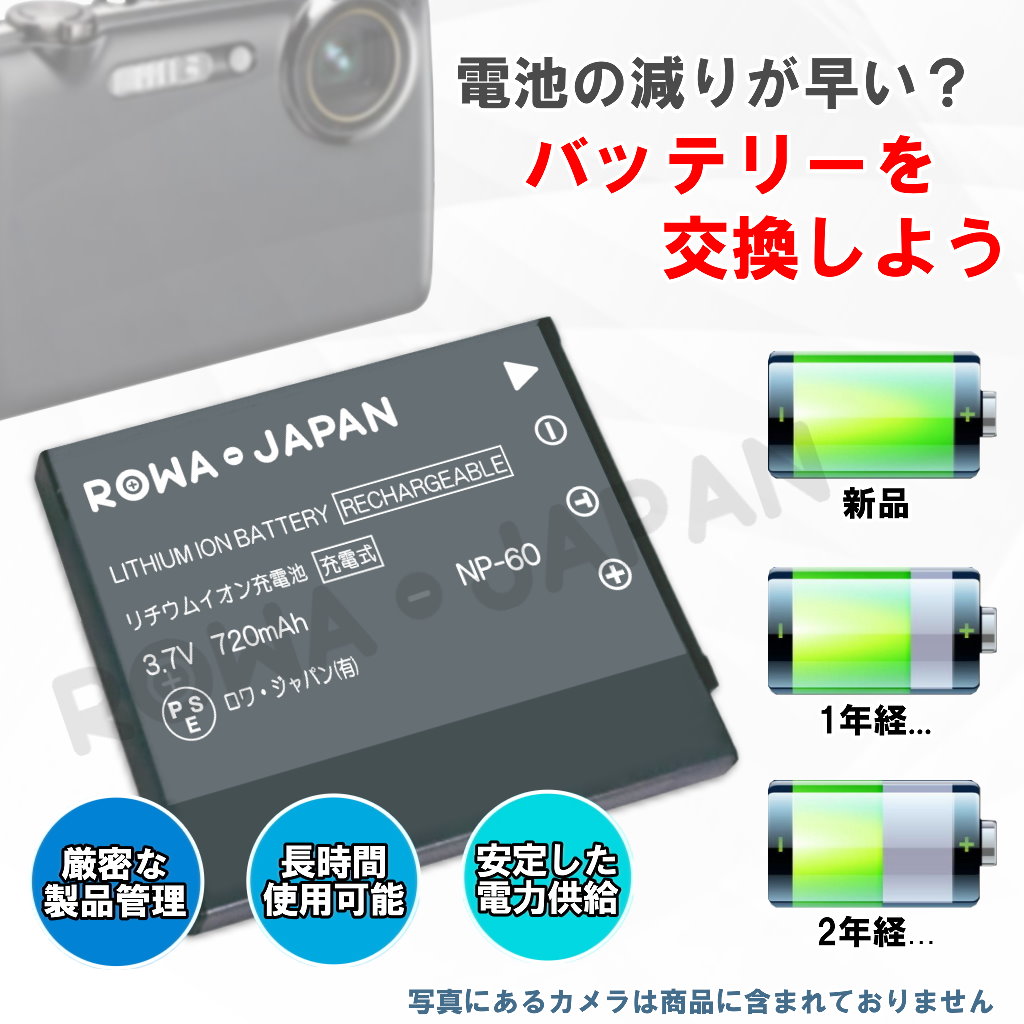 ■ロワ製品には過充電、過放電等の保護回路が内蔵されています。よってカメラ及びビデオ等本体に障害を与えることなく、安心してご利用頂けます。