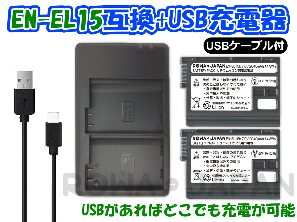 ■ニコン EN-EL15 / EN-EL15a / EN-EL15b 互換 バッテリー 2個 と MH-25 互換 デュアルバッテリーチャージャーのセットです。