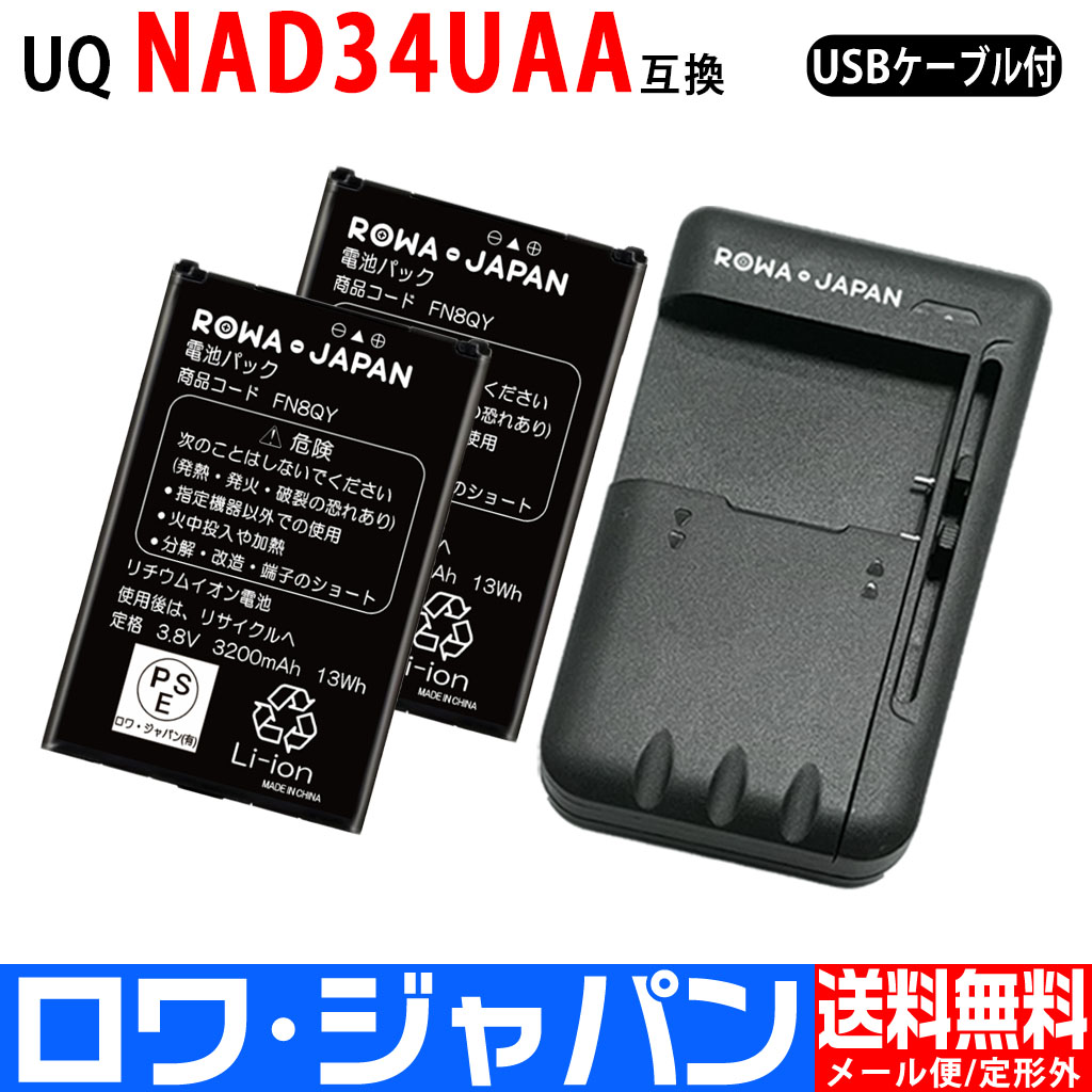 ■UQコミュニケーションズ対応 NAD34UAA 対応バッテリー 2個 とマルチ チャージャー の セット