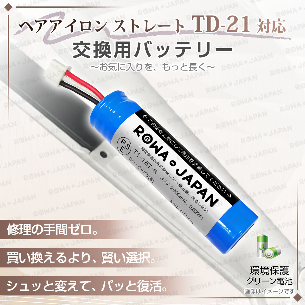 カシムラ対応 コードレス ヘアアイロン TD-21/TI-182 交換バッテリー